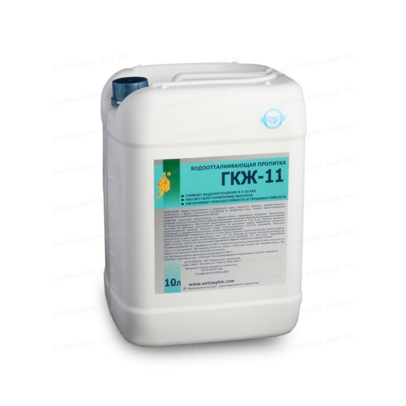 Водоотталкивающий состав ГКЖ-11 (концентрат) предназначен для защиты от воздействия влаги впитывающих пористых строительных материалов и конструкций. Состав ГКЖ-11 придает водоотталкивающие свойства обработанным материалам.